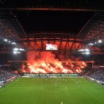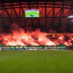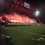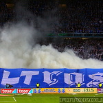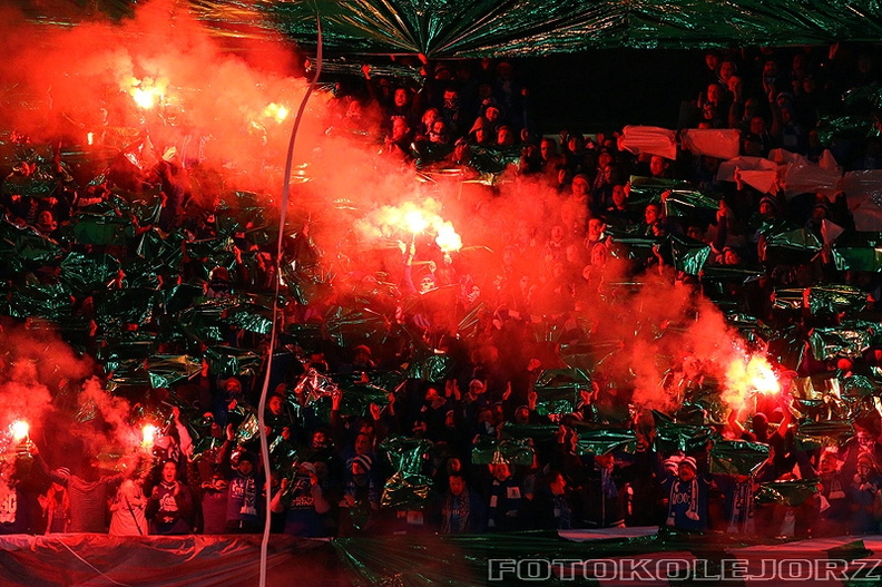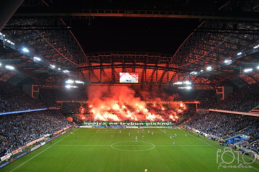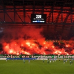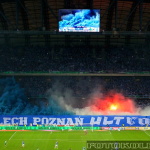 Tak jak od początku wiosny w Kotle pilnowane były zasady – zero spitusów gdziekolwiek, zero wypindraczonych lasek na dolnym poziomie i ogólna mobilizacja na doping i godne reprezentowanie Kolejorza. Mimo, że karna brygada musiała kilka razy interweniować to można powiedzieć, że jak na ilość wiary, która pojawiła się na meczu, skład i poziom Kotła był na bardzo dobrym poziomie. Cieszył także wyraźny podział na kolory koszulek i wzajemna mobilizacja wśród kibicowskiej braci.