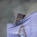 Wracając do meczu, to cała nasza praca organiczna największe efekty przyniosła w dopingu. Często bywało tak, że tłumy na pozostałych trybunach rozmywały głos płynący z Kotła – tym razem serce stadionu udźwignęło swoją rolę przez całe spotkanie, nadając mu odpowiedni rytm i ton. Po rozgrzewających przyśpiewkach kilka razy powrzucaliśmy na wchodzących na sektor gości, a potem ruszyliśmy z Każdy z nas to wie. Mecz się rozpoczął, a my w tym czasie prezentowaliśmy pierwszą z opraw przygotowanych na ten mecz.